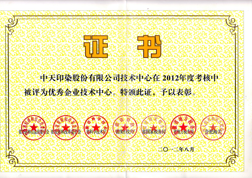 2012年度省優(yōu)秀企業(yè)技術(shù)中心