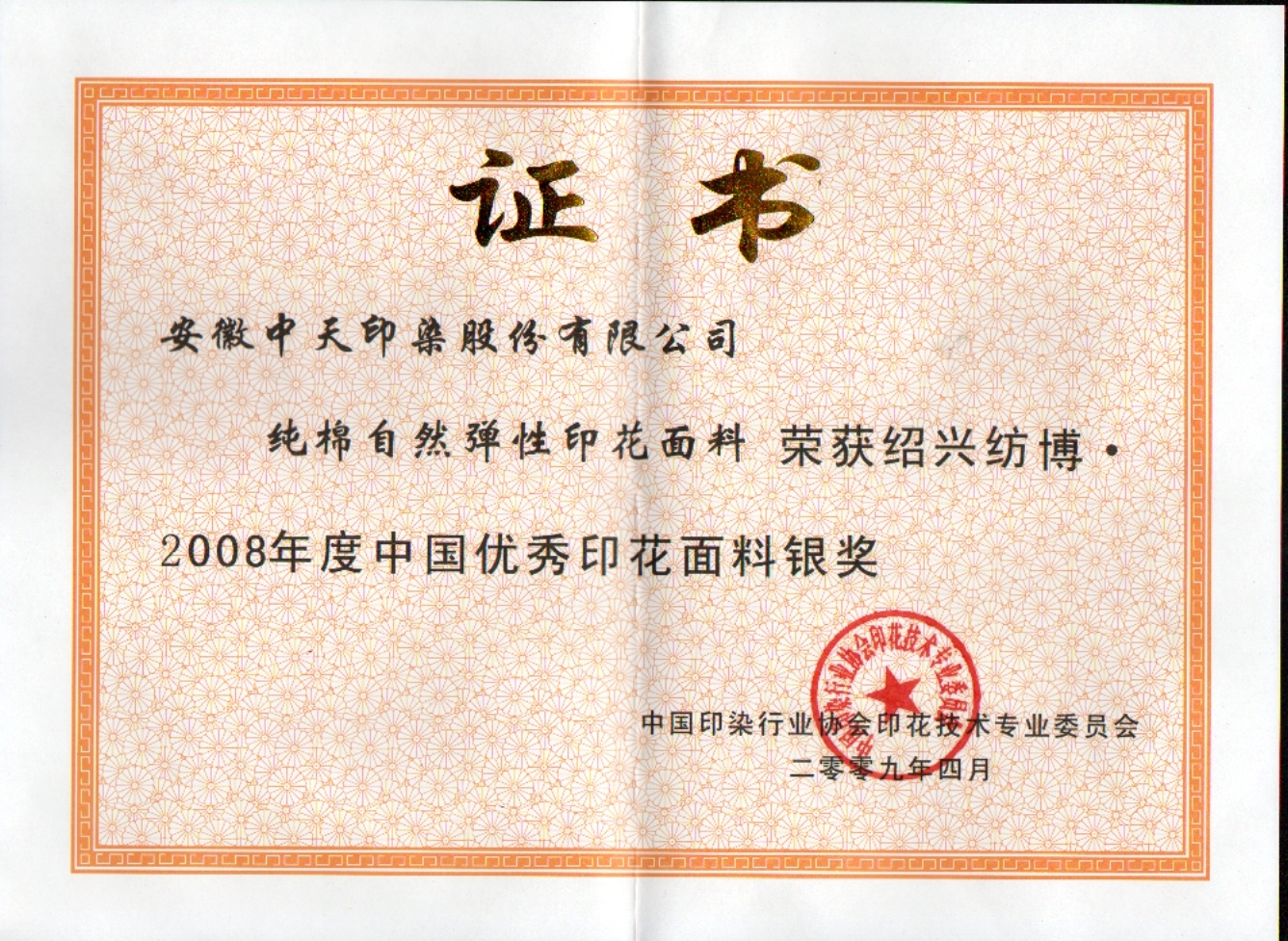純棉自然彈性印花面料榮獲中國優(yōu)秀印花面料銀獎(jiǎng)