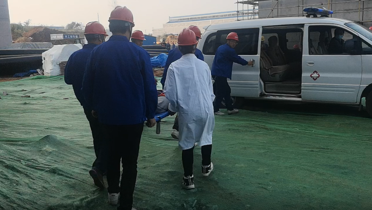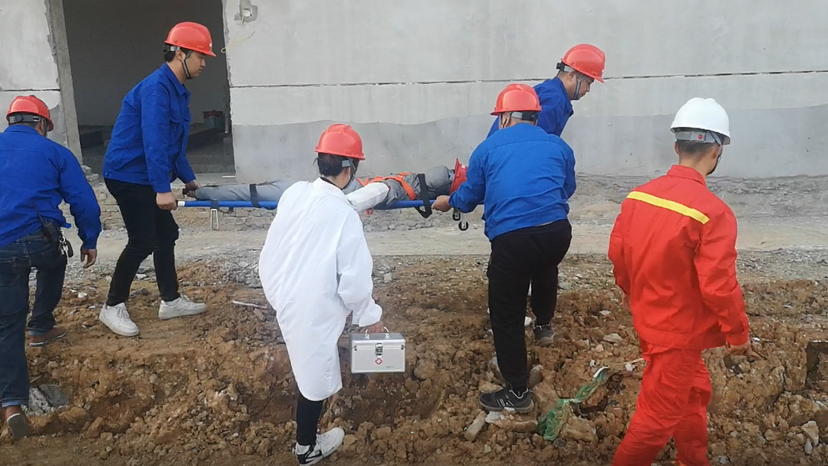 此次演練背景為一名工人在高空作業(yè)過(guò)程中因未正確固定安全繩從約8米高的作業(yè)平臺(tái)不慎墜落至地面,傷情不明。演練現(xiàn)場(chǎng),事先準(zhǔn)備好的演練假人已運(yùn)至高空作業(yè)平臺(tái),并模擬高空墜落,工人呼救、安全員施工員迅速趕到現(xiàn)場(chǎng)、上報(bào)至應(yīng)急小組現(xiàn)場(chǎng)指揮、撥打120急救電話(huà)……本次演練科目設(shè)置涵蓋發(fā)現(xiàn)事故、信息報(bào)送、前期處置、應(yīng)急響應(yīng)、協(xié)作配合、現(xiàn)場(chǎng)施救、醫(yī)療救護(hù)等,完整再現(xiàn)了事故處置的全過(guò)程,演練過(guò)程環(huán)環(huán)相扣,分工合理,參演人員訓(xùn)練有素、動(dòng)作規(guī)范、密切配合,演練有序開(kāi)展。